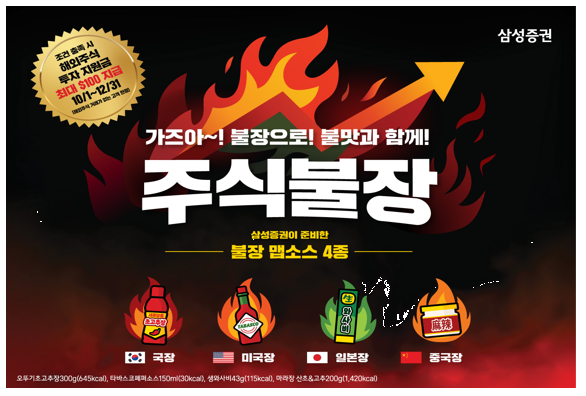 주식시장의 '장(場)'과 음식의 '장(醬)'이라는 중의적 의미를 활용해, 한국의 '고추장', 일본의 '와사비', 중국의 '마라장', 미국의 '핫소스'로 구성된 4종 세트를 기획했다. 전세계 30개국 투자가 가능한 삼성증권만의 강점을 광고 콘셉트와 연계해 위트있게 풀어냈다는 평가를 얻고 있다고 삼성증권측은 설명했다.