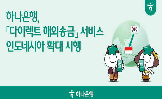 하나은행(은행장 이호성)은 인도네시아 '다이렉트 해외송금' 서비스를 시행한다고 21일 밝혔다.