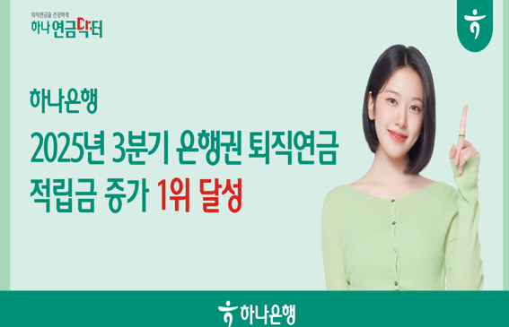 하나은행(은행장 이호성)이 은행권 퇴직연금 적립금 증가 1위를 달성했다. 2025년 3분기 누적금액 기준이다.
