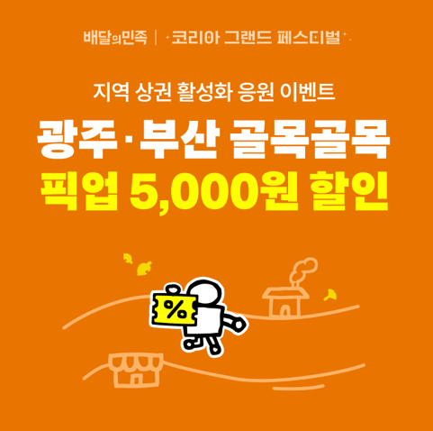 배민은 우선 코리아 그랜드 페스티벌 개막식이 열리는 광주광역시, 부산광역시 전 지역에서 픽업 주문 시 사용할 수 있는 5천원 할인 쿠폰을 다음달 18일까지 매일 선착순 증정한다.