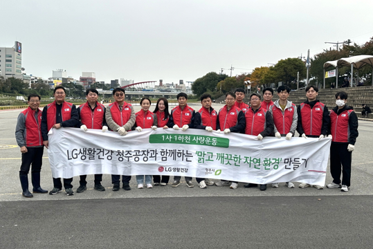 이날 LG생활건강 청주공장 임직원들은 약 2시간 동안 무심천 체육공원 인근(청주대교~제1운천교)에서 50리터 종량제 봉투 10개 분량의 쓰레기를 수거했다.