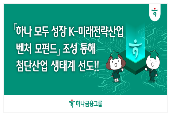 '하나 모두 성장 K-미래전략산업 벤처 모펀드'에는 하나은행, 하나증권, 하나카드, 하나캐피탈, 하나대체투자자산운용, 하나벤처스 등 하나금융그룹의 관계사 6곳이 참여한다.