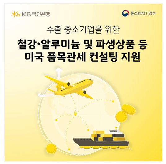 KB국민은행(은행장 이환주)이 중소벤처기업부, 중소벤처기업진흥공단과 함께 관세 피해 수출기업의 경쟁력 강화를 위한 '미국 품목관세 맞춤형 컨설팅 프로그램'을 운영한다. 자료=KB국민은행.