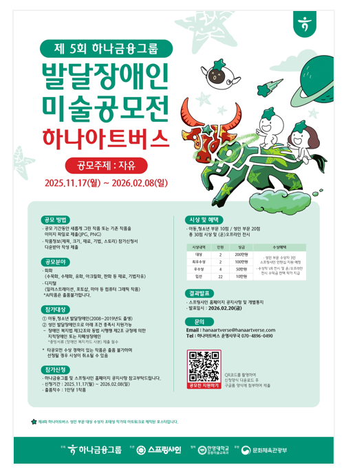 하나금융그룹(회장 함영주)은 발달장애 예술가를 대상으로 '제5회 하나 아트버스'(Hana Artverse) 미술 공모전을 개최한다고 17일 밝혔다.