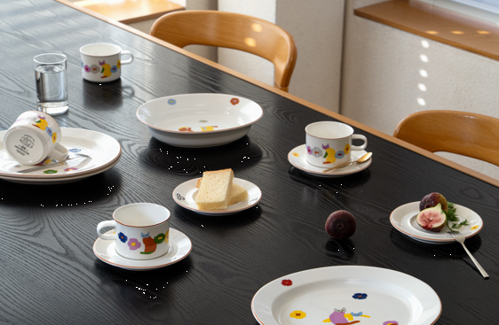 이번 협업 신제품은 머그, 머그 + 소서, 오벌 보울, 오벌 플레이트에 세트 구성을 포함하여 각 패턴별 7종씩 총 14종으로 출시된다.