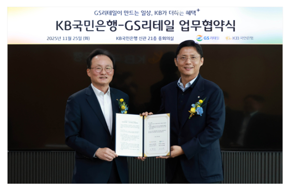 KB국민은행(은행장 이환주)은 GS리테일(대표이사 허서홍)과 '고객의 일상에 혜택을 더하는 고객 경험 혁신'을 위한 업무협약을 25일 체결했다.