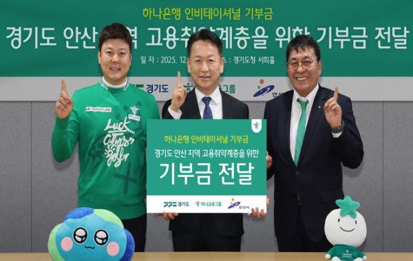 하나금융그룹(회장 함영주)은 경기도 안산 지역 고용취약계층을 위한 기부금 8천만원을 전달했다고 10일 밝혔다.
