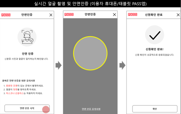안면 인증 절차는 통신 3사가 운영하는 패스(PASS) 앱을 통해 제공된다. 패스 앱을 열어 본인 얼굴 사진을 찍어 확인하는 방식이다. 신분증 얼굴 사진과 신분증 소지자가 같은 사람인지 확인되면 결과값(Y·N)만 저장·관리하고 인증에 사용된 생체정보 등은 촬영한 휴대전화, 패스앱 또는 관리 시스템에 보관, 저장되지 않는다.