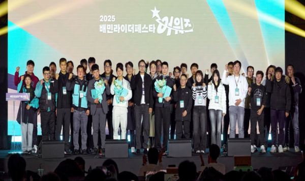 배달앱 배달의민족을 운영하는 ㈜우아한형제들(대표 김범석)과 배민 물류 서비스를 전담하는 ㈜우아한청년들(대표 김용석)이 국내 최초의 라이더 대상 오프라인 시상식 '2025 배민라이더페스타 어워즈' 행사를 지난 15일 열었다.