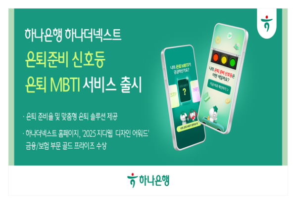 하나은행(은행장 이호성)은 '은퇴준비 신호등·은퇴 MBTI' 서비스에 나선다. 은행권 처음이다.