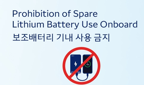 이에 따라 대한항공과 아시아나항공, 진에어, 에어부산, 에어서울의 국내선 및 국제선 항공편 기내에서는 보조배터리로 휴대전화, 태블릿, 노트북, 카메라 등 전자기기를 충전하는 행위가 모두 불허된다.