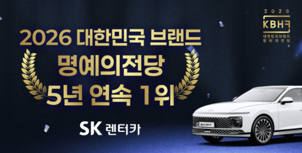 SK렌터카(대표이사 이정환)가 '2026 대한민국 브랜드 명예의전당'에서 5년 연속 1위를 수상했다.