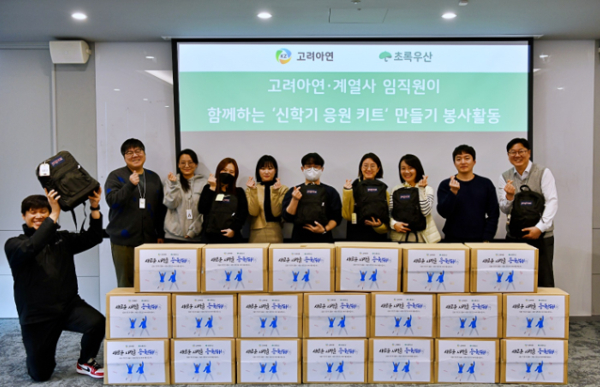 지난 20일 서울 종로구 고려아연 본사 다목적실에서 실시한 '고려아연·계열사 임직원이 함께하는 신학기 응원키트 만들기 봉사활동'에는 고려아연과 계열사 서린정보기술·케이지트레이딩·한국전구체(KPC) 임직원 10여명이 참여했다.