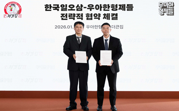 이날 오후 서울 송파구 우아한형제들 '더큰집'에서 열린 협약식에는 김지훈 우아한형제들 사업부문장, 김재훈 한국일오삼 전무 등 양사 주요 관계자들이 참석했다.