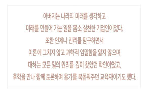직물 회사에서 출발한 회사를 에너지 화학정보통신 사업에서 세계적 경쟁력을 갖춘 글로벌 기업으로 성장시켰고, 전경련을 이끌며 경제 위기를 예견하고 국가 경쟁력 향상을 외쳤던, 진정한 애국자였다.