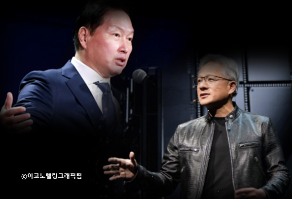 최태원 SK그룹 회장과 젠슨 황 엔비디아 최고경영자(CEO)가 미국 실리콘밸리에서 치맥 회동을 했다. 이 자리에는 최태원 회장의 장녀인 최윤정 SK바이오팜 전략본부장과 젠슨 황 CEO의 장녀인 메디슨 황도 함께 했다.