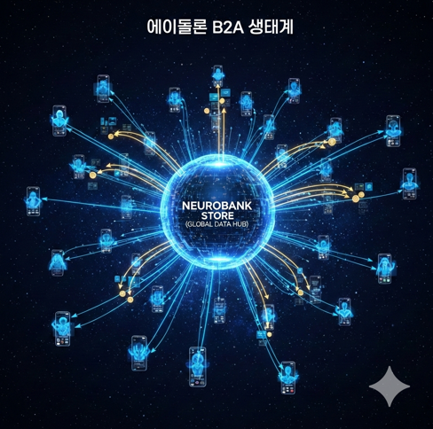 인류 상거래의 문법 자체를 바꾸는 비즈니스 룰의 전복에 있다. 이제껏 인류가 경험한 상거래는 사람이 소비자에게 호소하는 B2C(Business to Consumer)나 기업 간의 거래인 B2B(Business to Business)의 틀에 갇혀 있었다. 하지만 에이돌론은 B2A(Business to Agent) 즉 AI 에이전트를 직접 상대한다. 자료='초격차 프라이빗 로컬 AI 에이돌론 비즈니스 모델 백서'