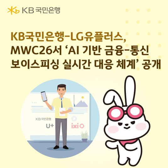 특히, 이번 MWC26에서 시연하는 협업 체계는 KB국민은행의 고도화된 보이스피싱 모니터링 시스템이 LG유플러스 AI 통화앱 '익시오(ixi-O)'의 보이스피싱 예방 서비스와 실시간으로 연동되는 미래형 모습을 구현했다고 덧붙였다.