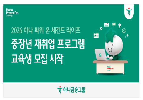 하나금융그룹(회장 함영주)은 중장년 맞춤형 재취업 지원교육 프로그램 『2026 하나 파워 온 세컨드 라이프』의 참가자를 모집한다.