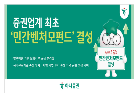 하나증권(대표이사 강성묵)이 증권업계 최초로 민간벤처모펀드(민간재간접벤처투자조합)를 결성한다.